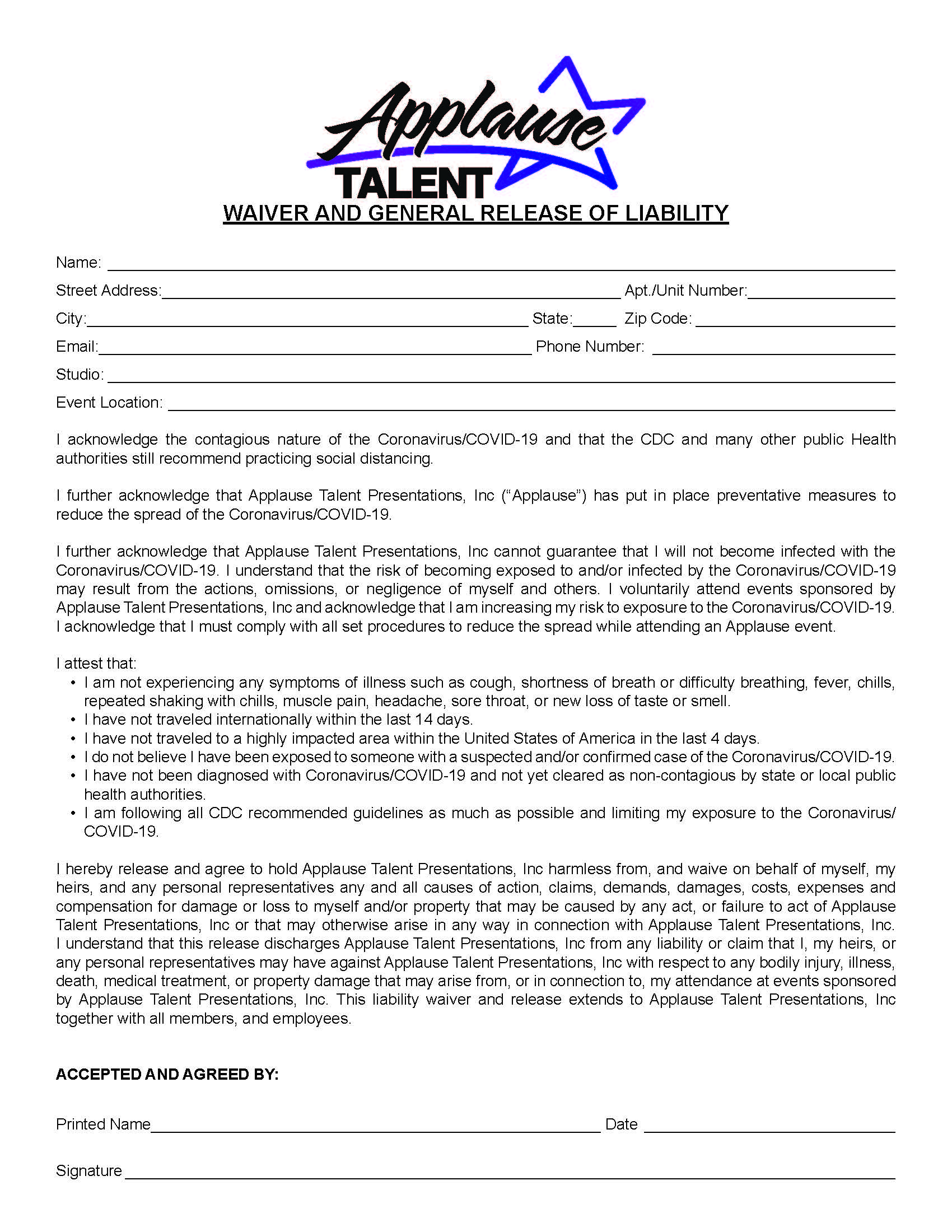 -Everyone attending must sign a waiver located on the Applause website.